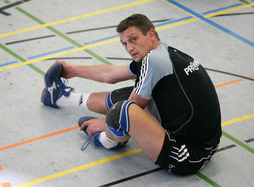 Andrei Xepkin. Jubel! Die THW-Deckung. Erstes Training in Russee: Andrei Xepkin beim Warmmachen.