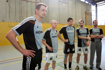 Erstes Training in Russee: Andrei Xepkin beim Warmmachen. Erstes Training in Russee: Uwe Schwenker begrüßt Andrei Xepkin. Erstes Training in Russee: Andersson dolmetscht zwischen Serdarusic und Xepkin. Erstes Training in Russee: Andersson dolmetscht zwischen Serdarusic und Xepkin.