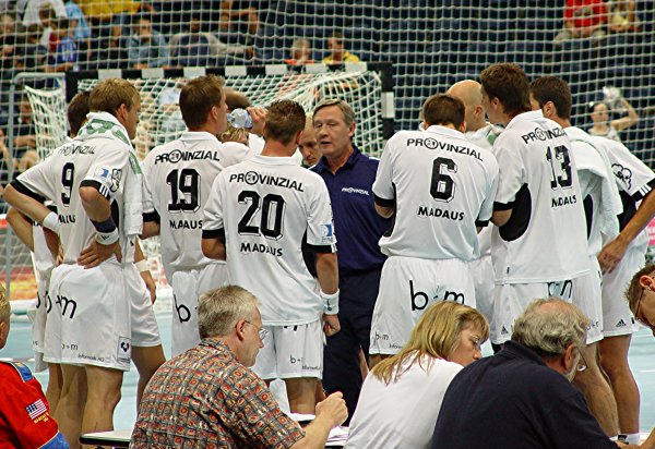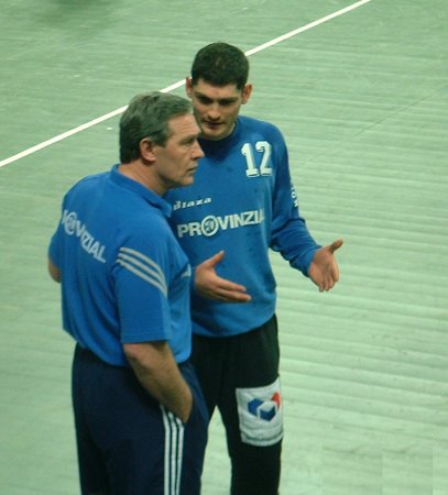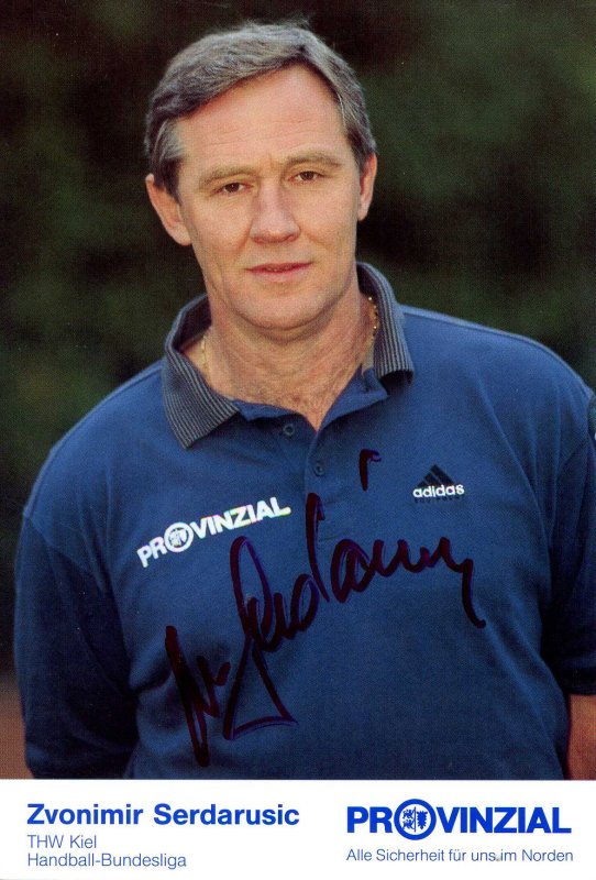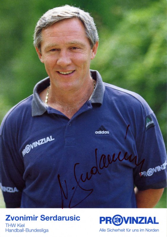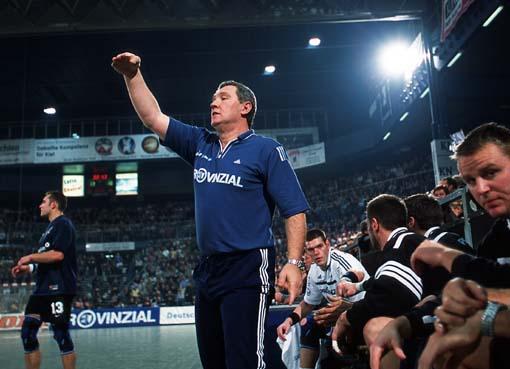 THW wird in Flensburg Meister: Abschied mit Tränen. Meisterfeier 2002: Der Meistermacher mit der Schale. EHF-Pokal-Finale 2002, Rückspiel: Noka Serdarusic mit EHF-Generalsekretär Wiedener. EHF-Pokal-Finale 2002, Rückspiel: Zufrieden.