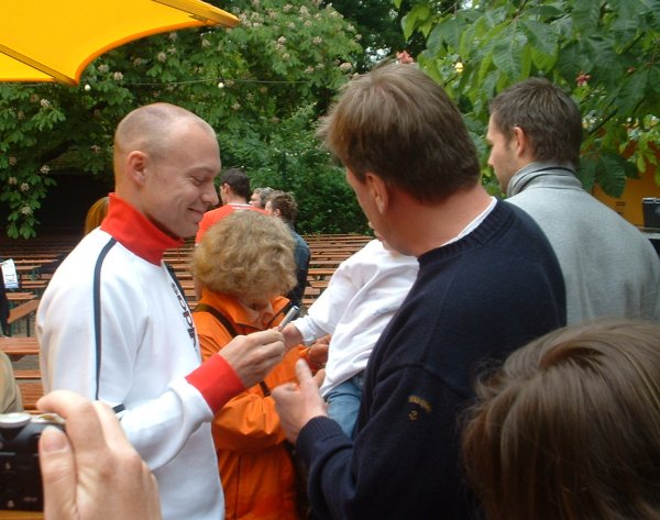 Forstbaumschule 2005: Henrik Lundström mit neuer Frisur. Forstbaumschule 2005: Henrik Lundström. Forstbaumschule 2005: Mattias Andersson und Henrik Lundström mit der Schale. Meisterfeier auf dem Kieler Rathausplatz und wilde Gesangseinlagen: Hernik Lundström.