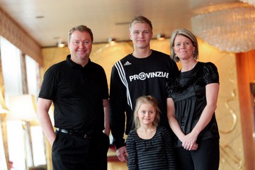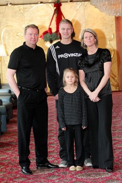 Saisoneröffnungspressekonferenz 2009. Saisoneröffnungspressekonferenz 2009: Aron Palmarsson. Porträt 2009/10: Aron Palmarsson. Aron Palmarsson mit seinem Vater Palmar Sigurdsson, seiner Mutter Heida Einarsdottir und Schwester Svala Palmarsdottir.