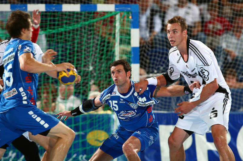 | Deckungsarbeit. | Filip Jicha beim Strafwurf. | Kampf um den Ball. | Filip Jicha. | |||