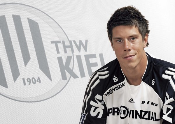 Kim Andersson. Kieler Jubel. Kim Andersson, im Hintergrund Marcus Ahlm. Kim Andersson wird festgemacht.