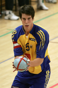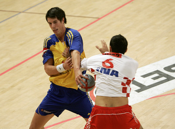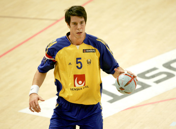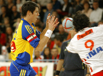 Stefan Kneer beim direkten Freiwurf. Stefan Kneer beim direkten Freiwurf. Kim Andersson. Kim Andersson wird attackiert.