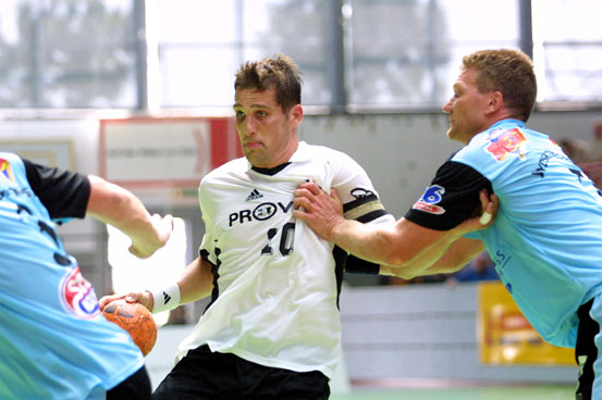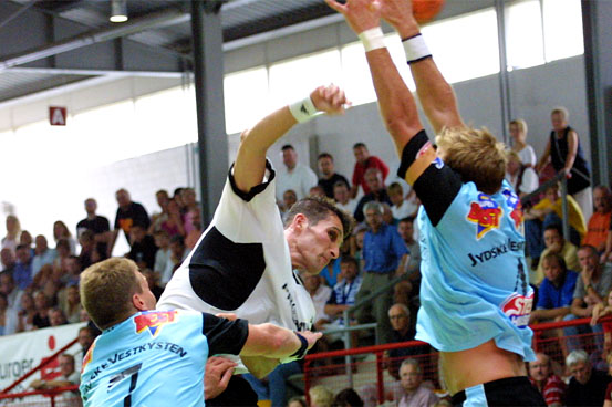 | Willstätt packte hart zu. | "Löwe" und "Pitti" blocken gegen M. Aschenbroich. | M. Aschenbroich gegen Lövgren. | Stefan Lövgren gegen Denis Spoljaric. | |||
