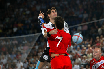| Knudsen am Kreis. | Knudsen am Kreis. | Nikola Karabatic. | Yves Grafenhorst, im Hintergrund Nikola Karabatic. | |||