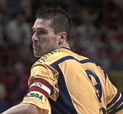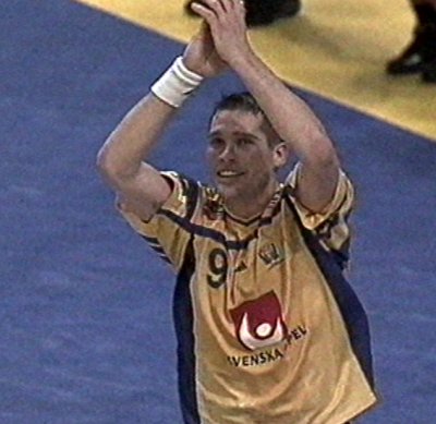 | EM 2002-Finale: Stefan Lövgren - Schwedens Kapitän. | EM 2002-Finale: Olsson und Lövgren jubeln. | EM 2002-Finale: Stefan Lövgren. | EM 2002-Finale: Stefan Lövgren. | |||