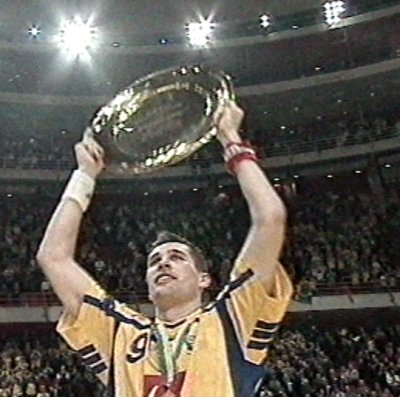 | Stefan - Richardson und Garralda schauen nur zu. | Roland Reime ehrt Stefan Lövgren als besten Spieler der Vereins-EM 2001. | Kapitän Stefan Lövgren. | "Löwe". | |||