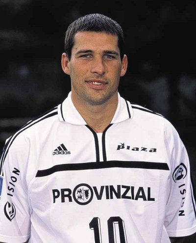 | Lövgren in Aktion, links Petersen | Stefan beim Stagediving auf der Meisterfeier 2000 | Autogrammkarte 2000/2001 | Immer zu Scherzen aufgelegt. | |||