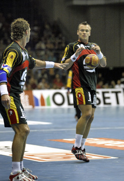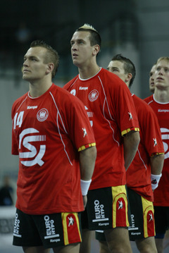 EM 2006: GER - ESP: Christian Zeitz. EM 2006: GER - ESP: Christian Zeitz. EM 2006: GER - ESP: Christian Zeitz zieht ab. EM 2006: Ruhetag bei der EM: Das Kieler Trio Zeitz, Karabatic und Fritz.