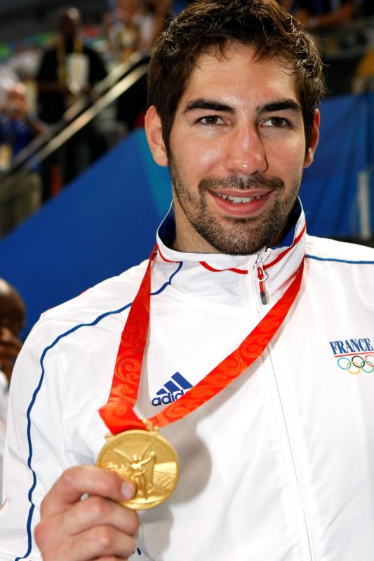 | Supercup 2008: HBL-Vorstand Rainer Witte beglückwünscht Thierry Omeyer zum Olympiasieg. | Supercup 2008: HBL-Vorstand Rainer Witte beglückwünscht Nikola Karabatic zum Olympiasieg. | Olympia 2008: Thierry Omeyer mit der Goldmedaille. | Olympia 2008: Nikola Karabatic mit der Goldmedaille. | |||