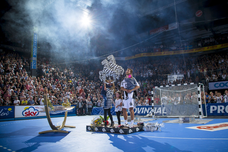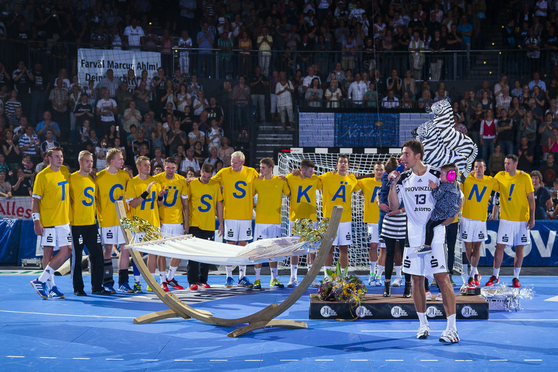Fotoshooting für das VELUX EHF Champions League Final4. Schultour mit Marcus Ahlm. Aron Palmarsson. Deutscher Meister 2013!
