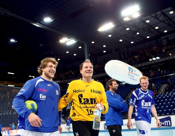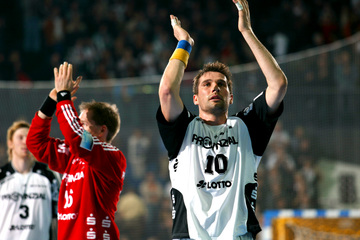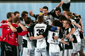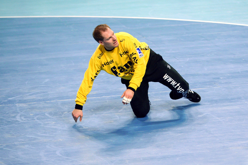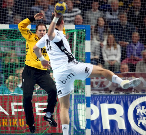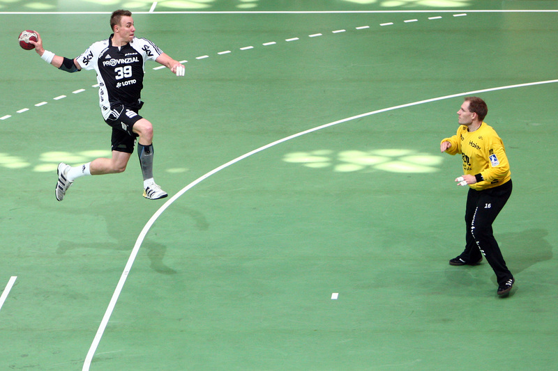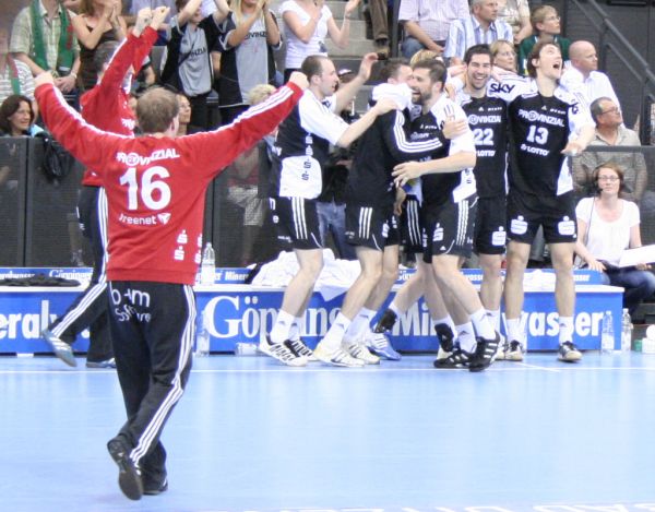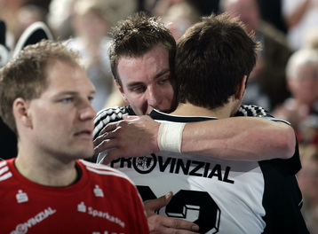 | Tobias Karlsson, Dominik Klein und Mattias Andersson. | Mattias Andersson. | Jubel beim TVG. | Momir Ilic gegen Mattias Andersson. | |||