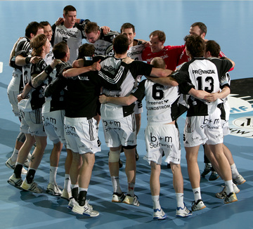 | Das THW-Torhüter-Duo. | Jubel beim THW. | Jubel beim THW. | Auszeit. | |||