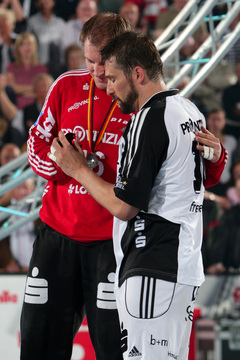 | Abschied von Stefan Lövgren: Die Weltauswahl. | Vid Kavticnik gegen Mattias Andersson. | Auszeit. | Mattias Andersson. | |||