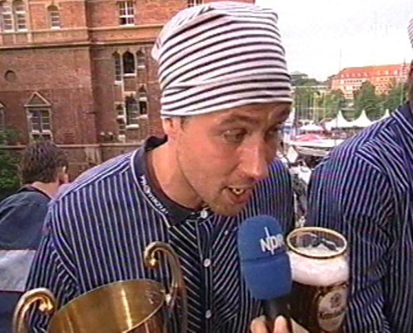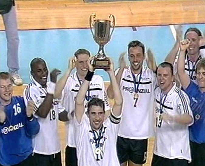 | Meisterfeier 2002: Morten, Julio und Deme. | EHF-Pokal-Finale 2002, Rückspiel: Da ist der Pott! | Morten Bjerre. | Morten Bjerre. | |||