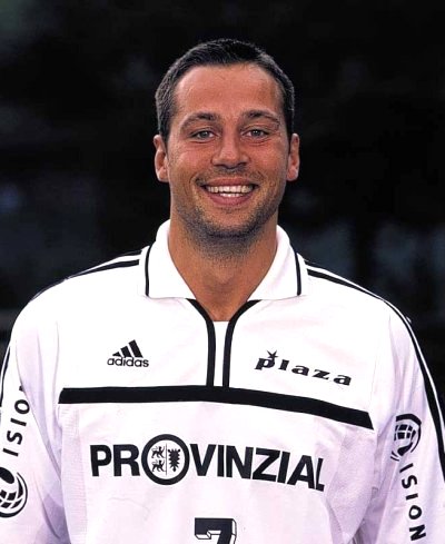 | Autogrammkarte 2001/2002. | Morten Bjerre. | Bjerre gegen Lozano, rechts Wislander am Kreis. | Morten Bjerre wird von der ABC-Deckung gestoppt. | |||