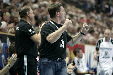 Schrecksekunde für den THW: Kapitän Stefan Lövgren wird von Physiotherapeut Uwe Brandenburg und Mannschaftsarzt Dr. Detlev Brandecker vom Platz geführt. Porträt 2005/2006: Uwe Brandenburg. Pittis Abschied: Die med. Abt. mit Dr. Brandecker, Brandenburg, Rother und Mommsen singt ein Ständchen. Pittis Abschied: Die med. Abt. mit Dr. Brandecker, Brandenburg, Rother und Mommsen singt ein Ständchen.