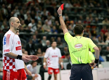 Davor Dominikovic. Pelle Linders gegen Kasper Hvidt. Trauer. WM 2007: FRA-CRO: Rot für Dominikovic.