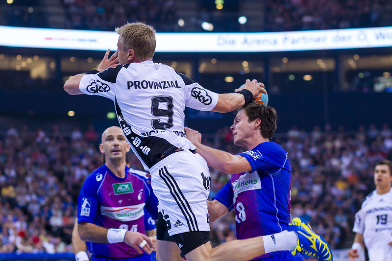 Hans Lindberg, im Hintergrund Davor Dominikovic. Davor Dominikovic gegen Rene Toft Hansen. Gudjon Valur Sigurdsson. THW im Angriff.