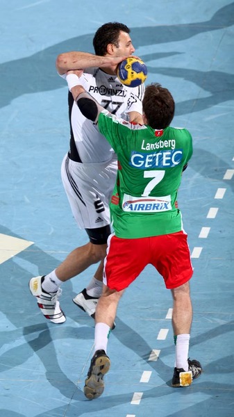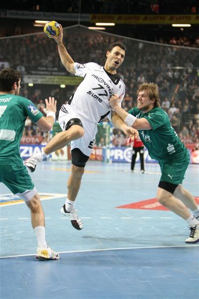 Tobias Reichmann passt zu Jerome Fernandez. Jerome Fernandez. Spielszene. Jerome Fernandez.