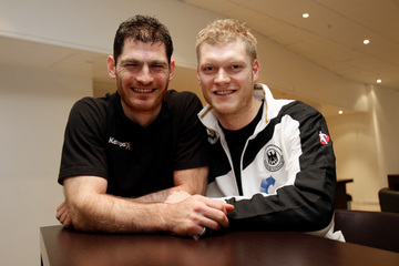 | Hein Daddel alias Andrei Xepkin und Henning Fritz. | Henning Fritz. | Meister! | Torhüterbesprechung. | |||