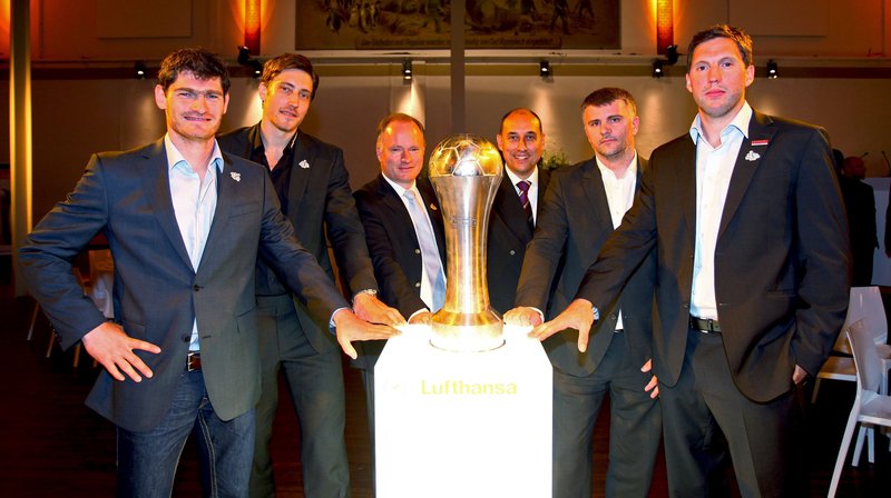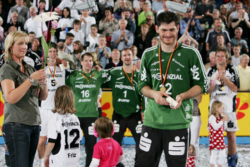 | Der neue DHB-Pokal. | Der neue DHB-Pokal. | Abschied von Stefan Lövgren: Die Weltauswahl. | Henning Fritz und Wolfgang Schwenke. | |||