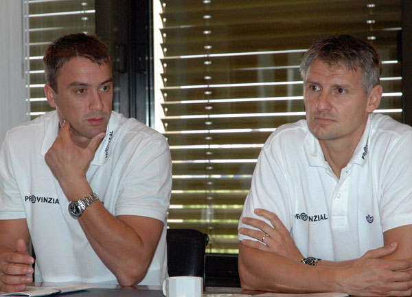 Saisoneröffnungspressekonferenz 2009: Momir Ilic und Peter Gentzel. Saisoneröffnungspressekonferenz 2009. Abschied von Stefan Lövgren: Das aktuelle THW-Team im Dress der Baltic Hurricanes. Porträt 2009/10: Peter Gentzel.