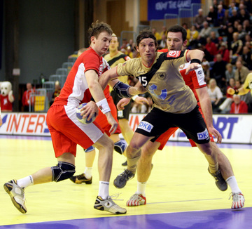 | EM 2008: GER-FRA: Torsten Jansen und Klimovets gegen Karabatic. | EM 2008: GER-FRA: Torsten Jansen. | EM 2008: GER-ISL: Dominik Klein und Torsten Jansen | EM 2008: ESP-GER: Torsten Jansen. | |||