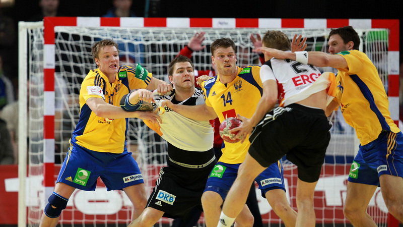 | Spielszene. | Marcus Ahlm gegen Tobias Karlsson. | Marcus Ahlm wird von Tobias Karlsson und Thomas Mogensen attackiert. | Spielszene. | |||