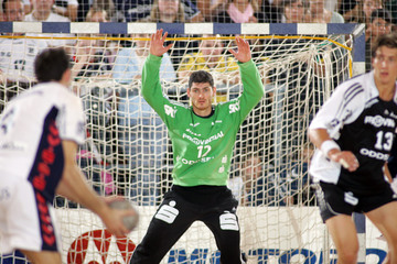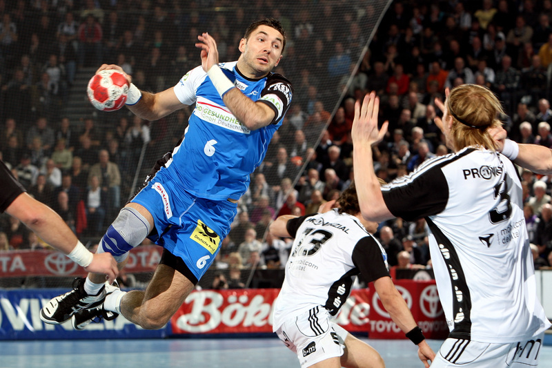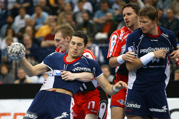 Blazenko Lackovic, Kavticnik und Ahlm. Blazenko Lackovic. Kim Andersson gegen Blazenko Lackovic. Torwart Henning Fritz erwartet den Torwurf von Flensburgs Blazenko Lackovic.