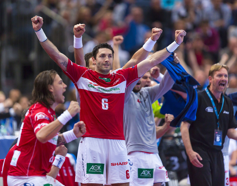 Blazenko Lackovic und Noka Serdarusic. Blazenko Lackovic. Blazenko Lackovic. Stefan Lövgren bricht zwischen Blazenko Lackovic und Nielsen durch.