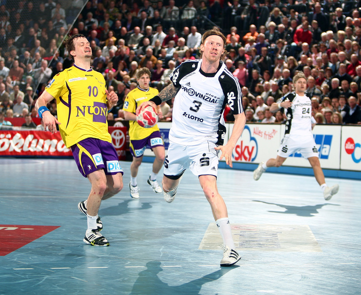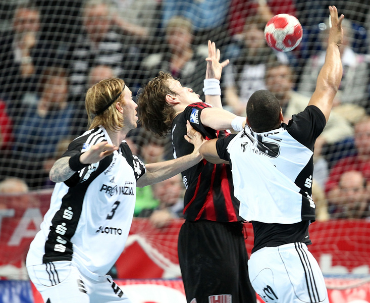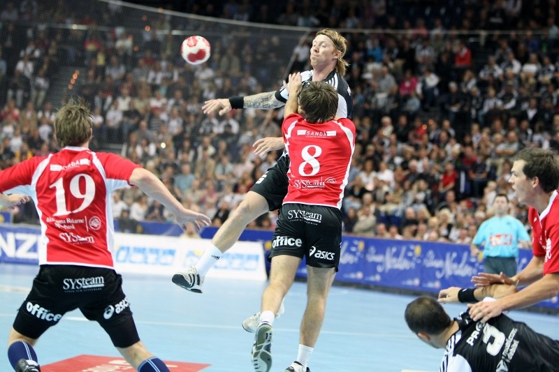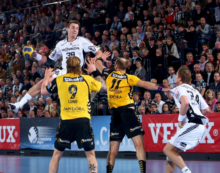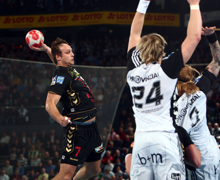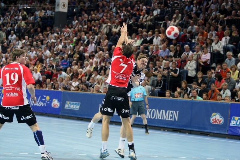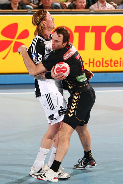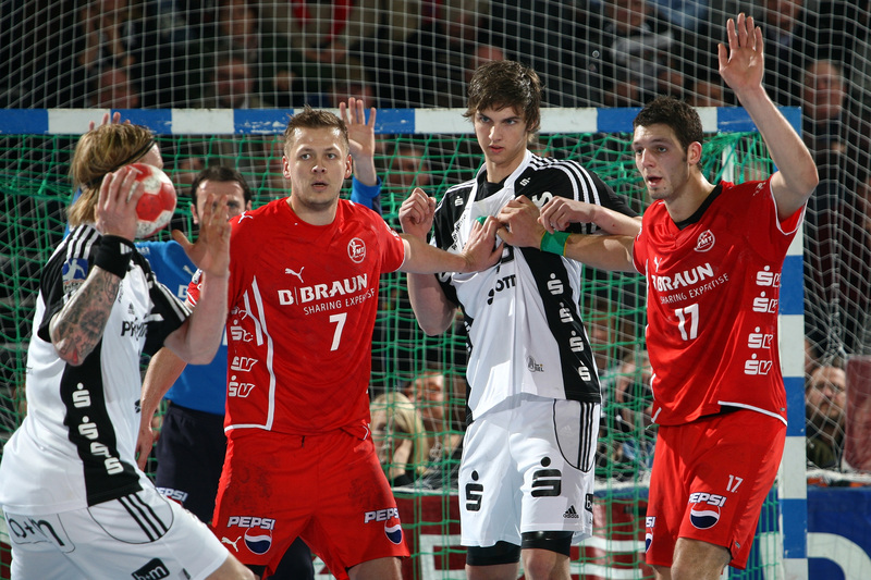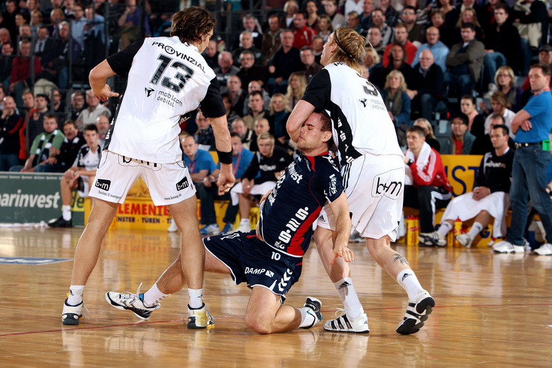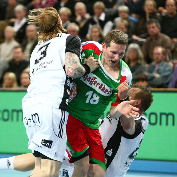 Börge Lund. Die Kieler Deckung packt zu. Jubel. Michael V. Knudsen.