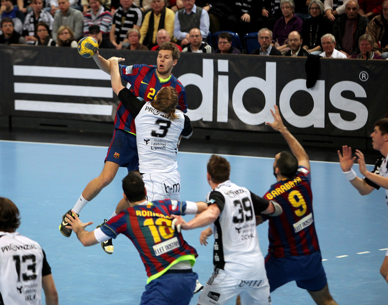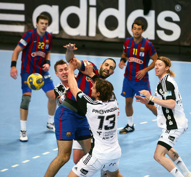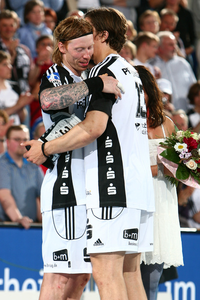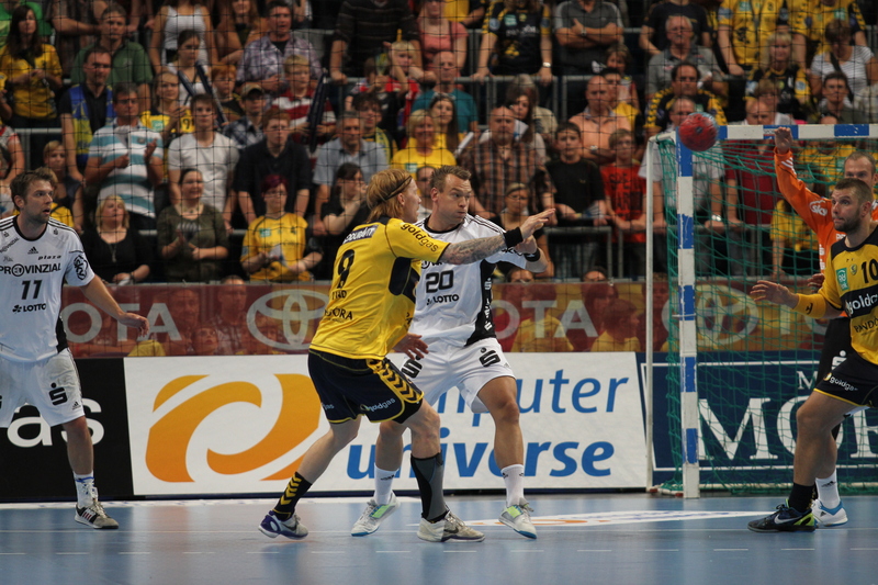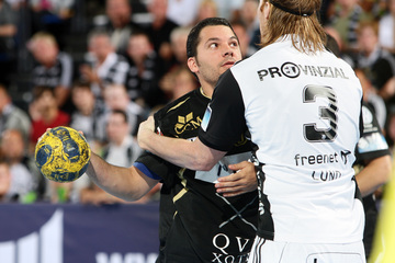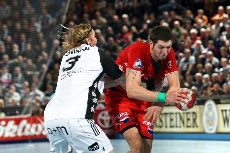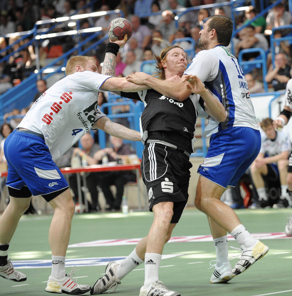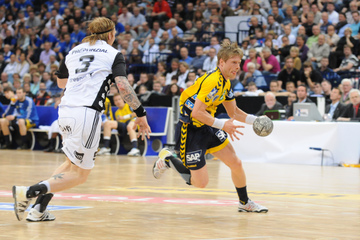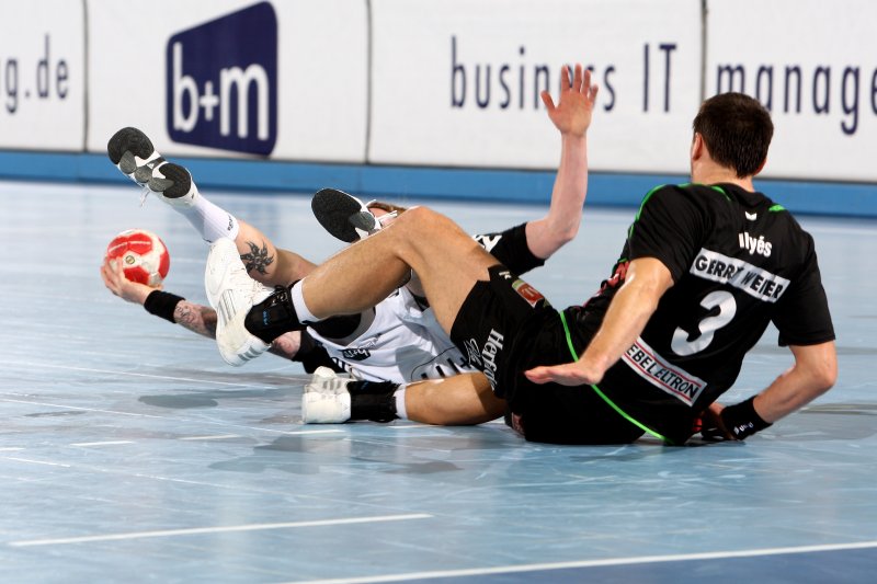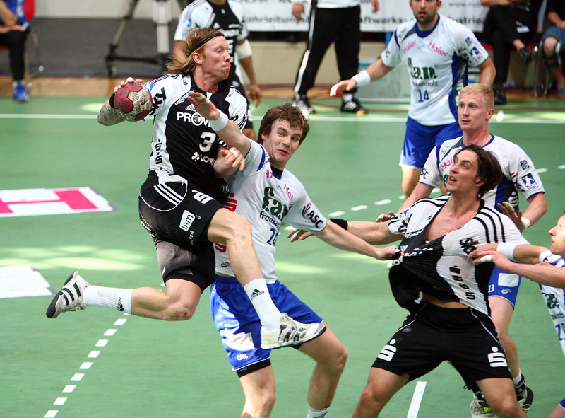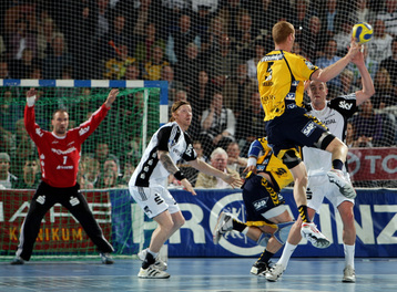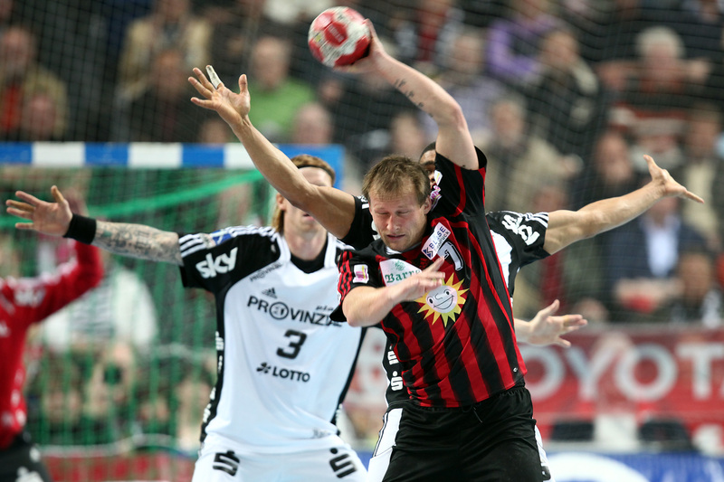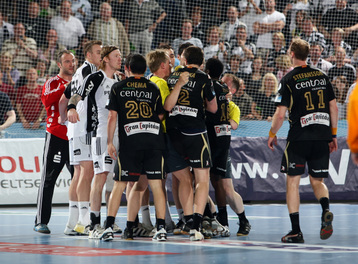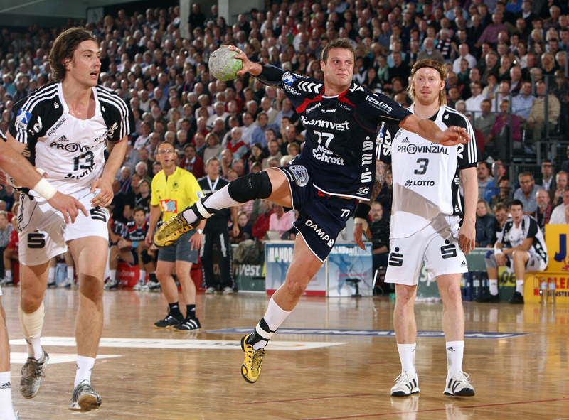 Börge Lund. Die Kieler Deckung packt zu. Jubel. Michael V. Knudsen.