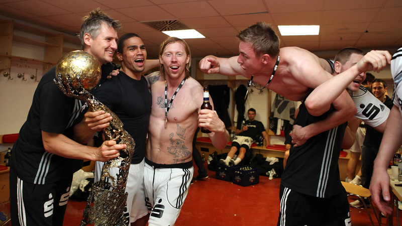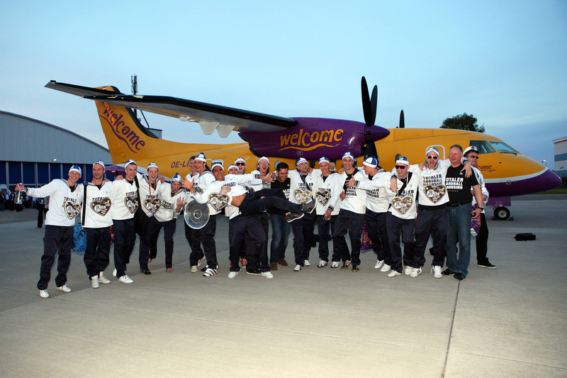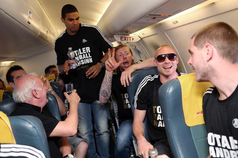 Deutscher Meister 2010! Deutscher Meister 2010! Sport1-Moderatorin Annett Sattler wurde von Daniel Narcisse getauft. Auf zum Flughafen!