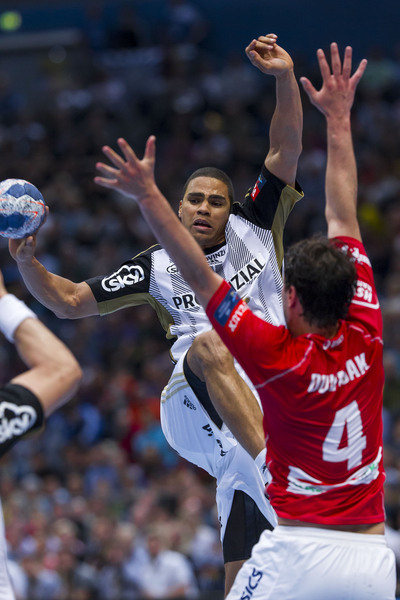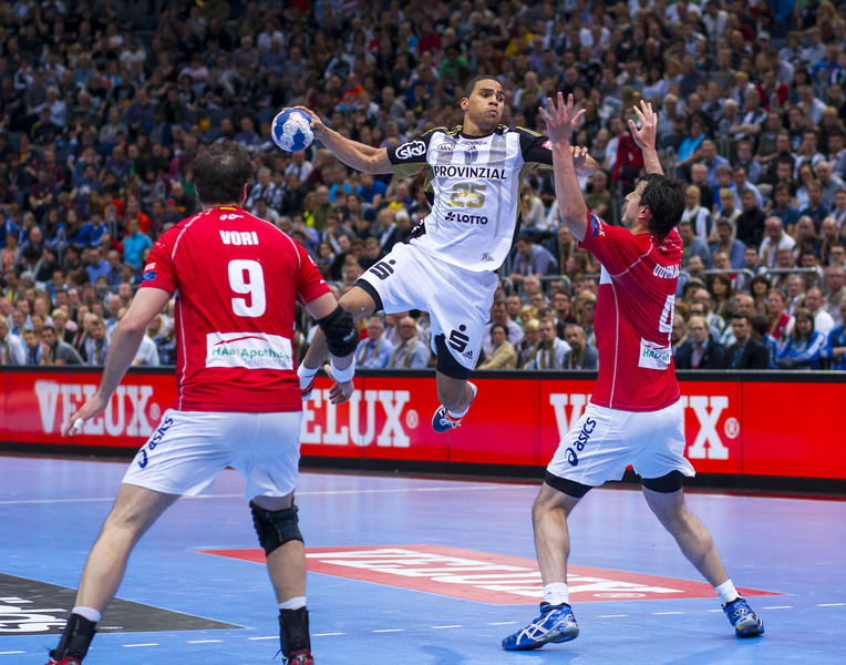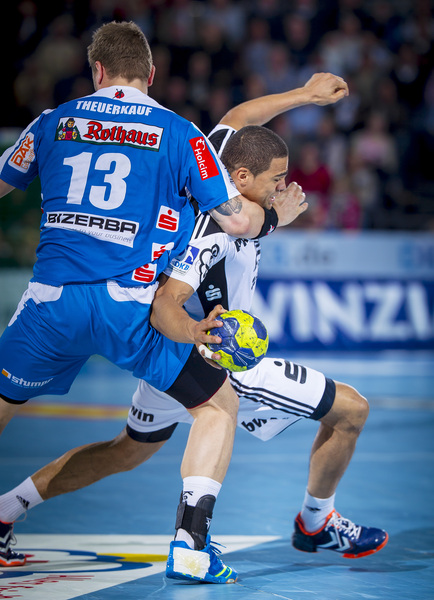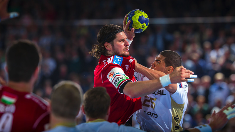 Fotoshooting für das VELUX EHF Champions League Final4. Fotoshooting für das VELUX EHF Champions League Final4. Filip Jicha. Deckung.