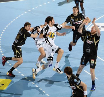 Nikola Karabatic, im Vordergrund Alex Pajovic. BM Ciudad Real: Champions-League-Sieger 2008. BM Ciudad Real: Champions-League-Sieger 2008. BM Ciudad Real: Champions-League-Sieger 2008.
