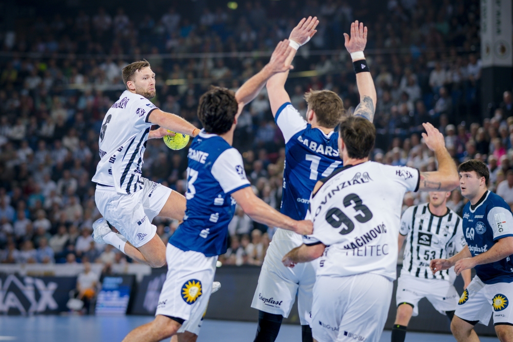 | Harald Reinkind und Emil Wernsdorf Madsen. | Eric Johansson, Jesse Dahmke und Harald Reinkind. | Nach dem Spiel. | Harald Reinkind - Porträt 2024/2025. | |||