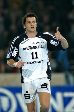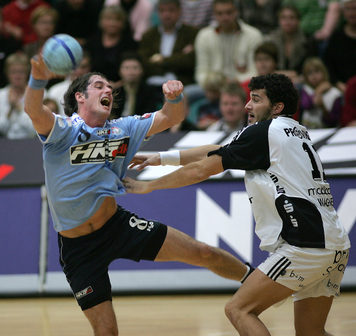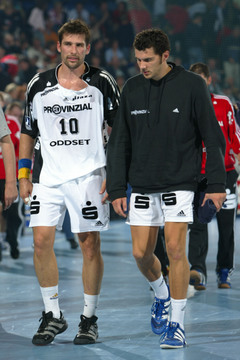 Hitzige Diskussion zwischen Lars Krogh Jeppesen und Adrian Wagner im Pokal-Halbfinale 2003/2004. Adrian Wagner. Koldings Bo Spellerberg wird von Adrian Wagner attackiert. Stefan Lövgren und Adrian Wagner verlassen nach dem THW Sieg das Spielfeld.