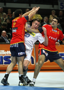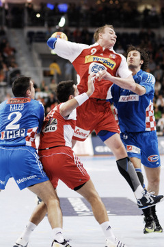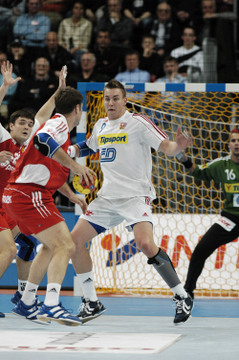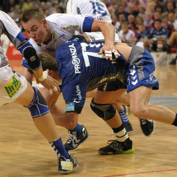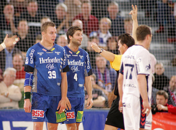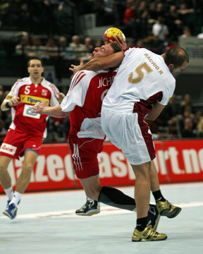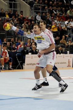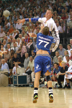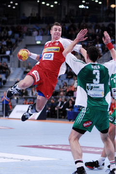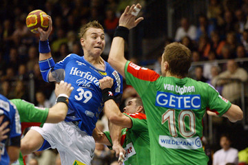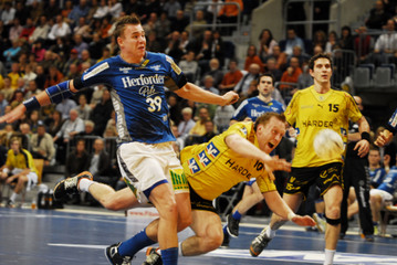 | Kreisläufer Marcus Ahlm und Lemgos Filip Jicha im Kampf um den Ball. | Filip Jicha. | |||||