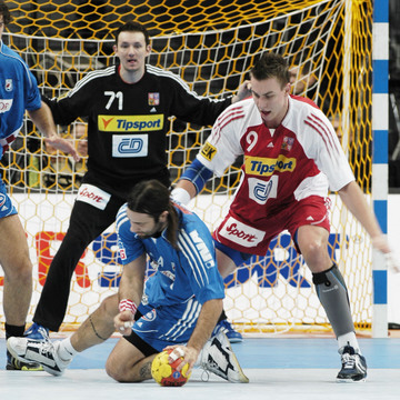 | WM 2007: EGY - CZE: Filip Jicha. | WM 2007: CZE - QAT: Jicha wird attackiert. | Filip Jicha. | Nikola Karabatic attackiert Filip Jicha. | |||