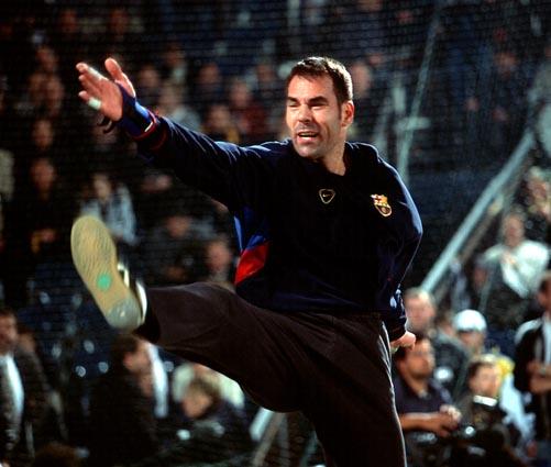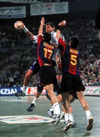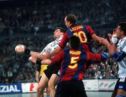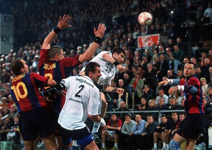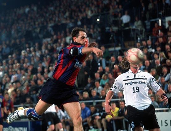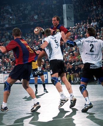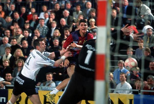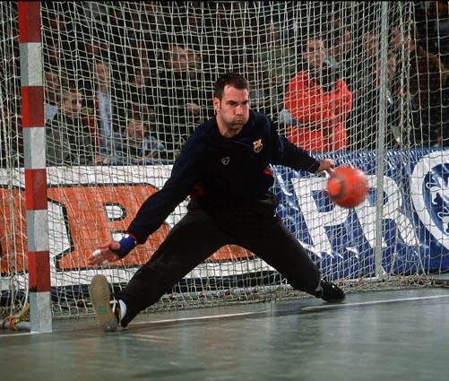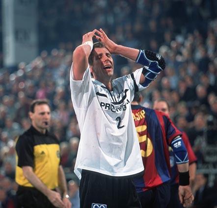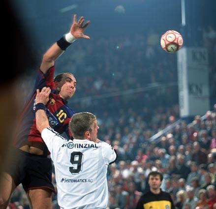 Stefan Lövgren beim 7m gegen David Barrufet. Barca-Kapitän David Barrufet. Barca-Kapitän David Barrufet. Tomas Svensson.