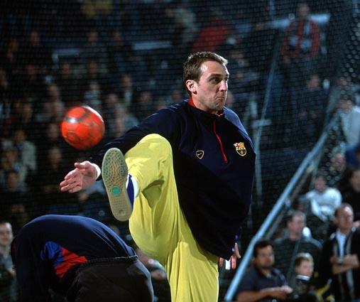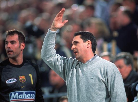 Nachdenklich - Barcelonas Trainer Valero Rivera vor dem Spiel. Valero Rivera. Valero Rivera. Rivera wähnte sich von den Schiedsrichtern benachteiligt.