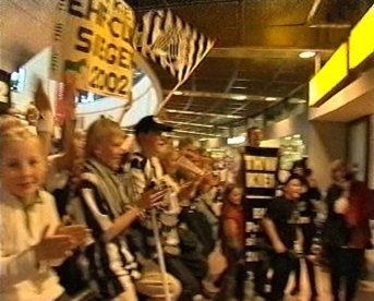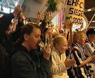 | EHF-Pokal-Finale 2002, Rückspiel: Empfang am Vereinsheim - Johan mit dem Pott. | EHF-Pokal-Finale 2002, Rückspiel: Empfang am Vereinsheim - Johan und Mattias mit dem Pott. | EHF-Pokal-Finale 2002, Rückspiel: Empfang am Vereinsheim. | ||||