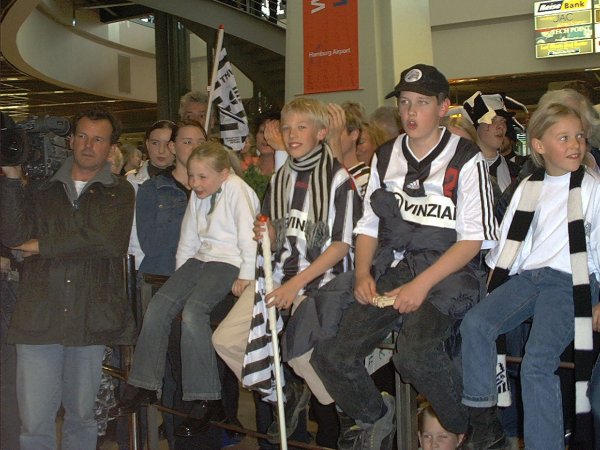 | EHF-Pokal-Finale 2002, Rückspiel: 200 Fans empfingen den THW am Flughafen. | EHF-Pokal-Finale 2002, Rückspiel: Das Objekt der Begierde. | EHF-Pokal-Finale 2002, Rückspiel: Empfang am Vereinsheim. | EHF-Pokal-Finale 2002, Rückspiel: Empfang am Vereinsheim - Lövgren mit Oberbürgermeister Gansel und Provinzial-Vorstandsvorsitzendem Reime. | |||
