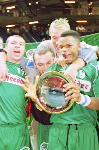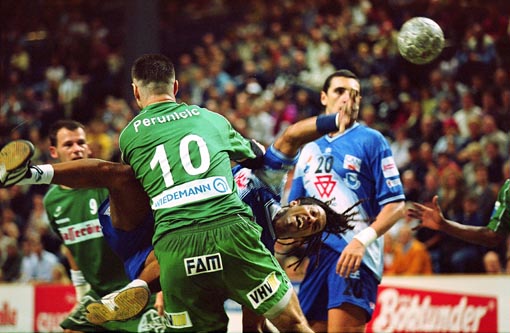 | Finale: Magdeburg - San Antonio: Richardson setzt sich durch. | Finale: Magdeburg - San Antonio: Richardson gegen Perunicic. | Finale: Magdeburg - San Antonio: Stefan Kretzschmar. | Finale: Magdeburg - San Antonio: Nenad Perunicic. | |||