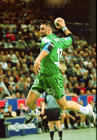 | Finale: Magdeburg - San Antonio: Sieger Magdeburg. | Finale: Magdeburg - San Antonio: Sieger Magdeburg. | EHF-Präsident Holmquist. | Roland Reime ehrt Stefan Lövgren als besten Spieler der Vereins-EM 2001. | |||