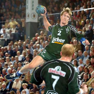 | Nebojsa Golic war mit 11/1 Toren bester Wetzlarer Werfer. | Petersen und Ahlm spielten erneut einen starken Mittelblock. | Petersen stoppt Viktorsson. | Viktorsson. | |||