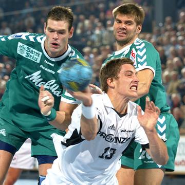 | Henning Fritz. | Demetrio Lozano gegen Jan-Fiete Buschmann. | Marcus Ahlm setzt sich durch. | Marcus Ahlm setzt sich durch, im Hintergrund Bezdicek und Ziercke. | |||