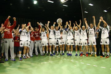 | Geschafft! THW-Kapitän Stefan Lövgren nach dem Sieg in der Kabine. | Geschafft! Durcheinander in der THW-Kabine nach dem Sieg. Martin Boquist, Kapitän Stefan Lövgren, Sebastian Preiß, Mattias Andersson. | Geschafft! THW-Kapitän Stefan Lövgren reckt die Meisterschale nach dem Spiel in Düsseldorf in die Höhe. Die Mannschaft jubelt. | Geschafft! THW-Kapitän Stefan Lövgren reckt die Meisterschale nach dem Spiel in Düsseldorf in die Höhe. Die Mannschaft jubelt. | |||